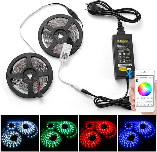 kit de cinta led 10 m 5050 smd rgb multicolor tira led luminosa 300 ledes con adaptador de corriente 5 a 12 v controlador bluetooth 4 0