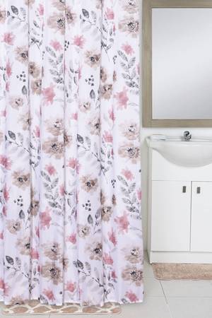 cortina bano flores plateadas