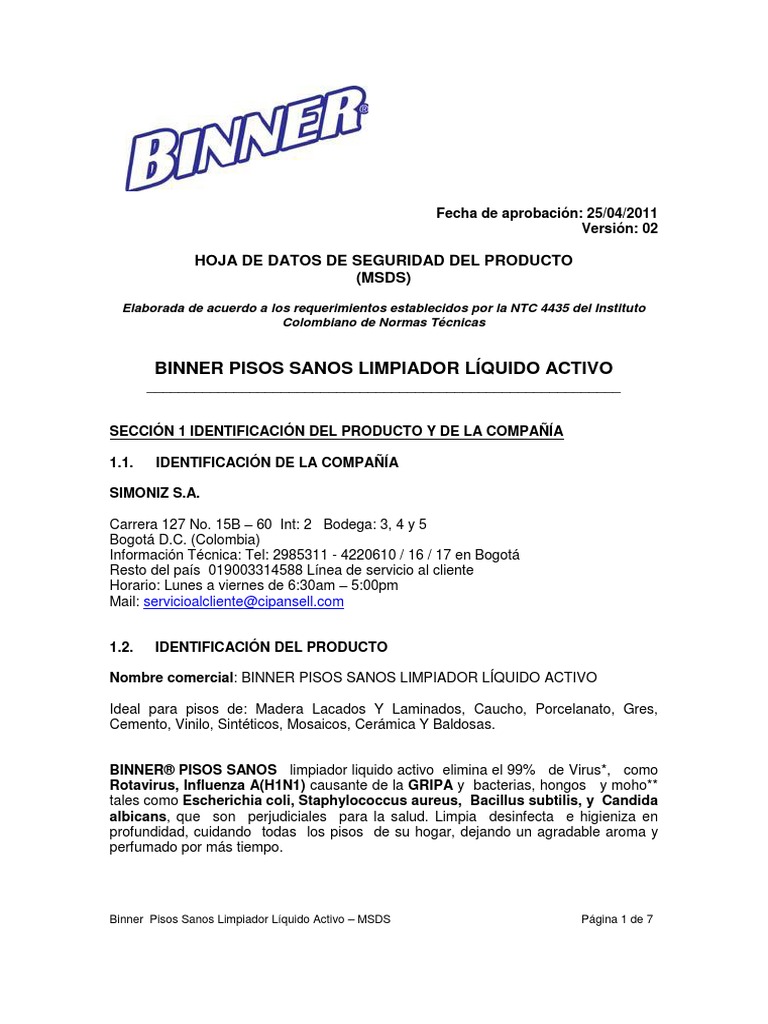 binner pisos sanos limpiador liquido