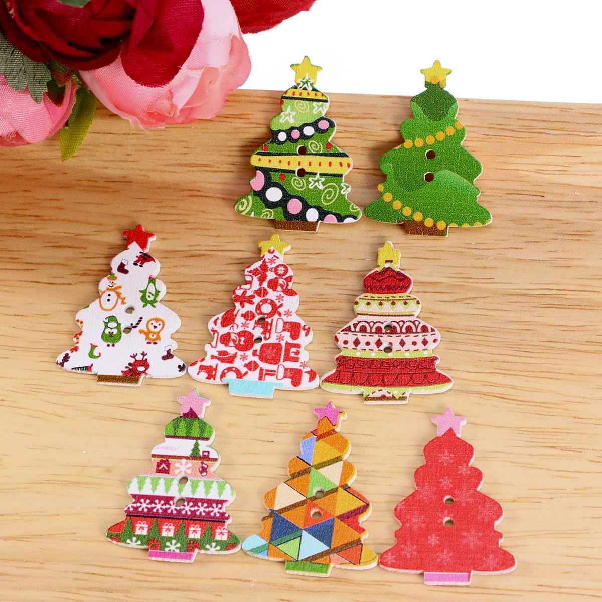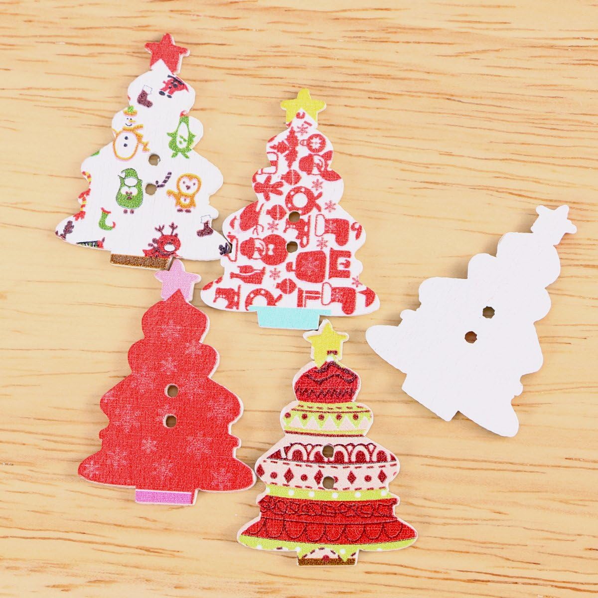 botones decorativos de plastico con forma de abetos y adornos navideno
