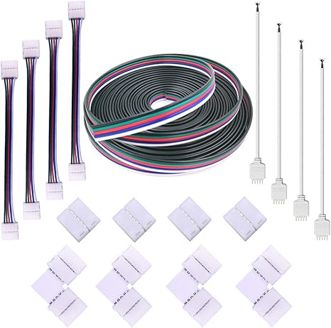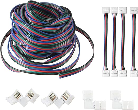 fsjee 12mm 5pin led strip connector kit with 16 4ft extension cable 4pcs gapness connectors 5 pin male connector wire cable l shape connectors strip