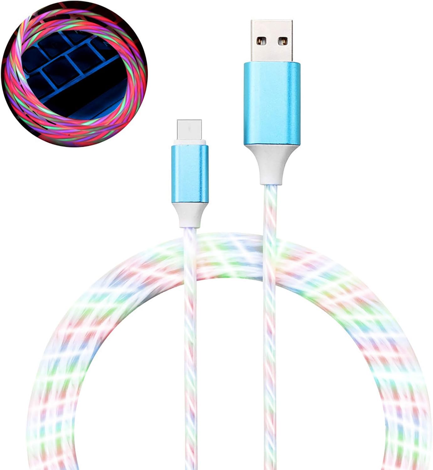 led charging cable koraba 6ft light up usb charger cord with color changing flowing lights color change light