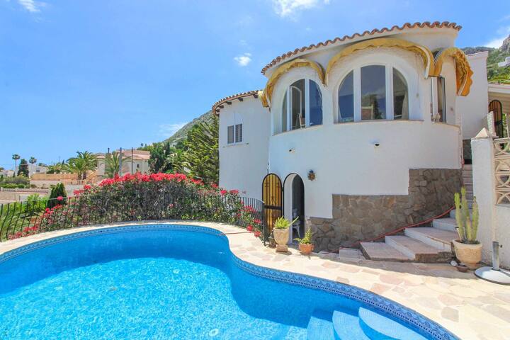 chalet con vistas al mar y piscina