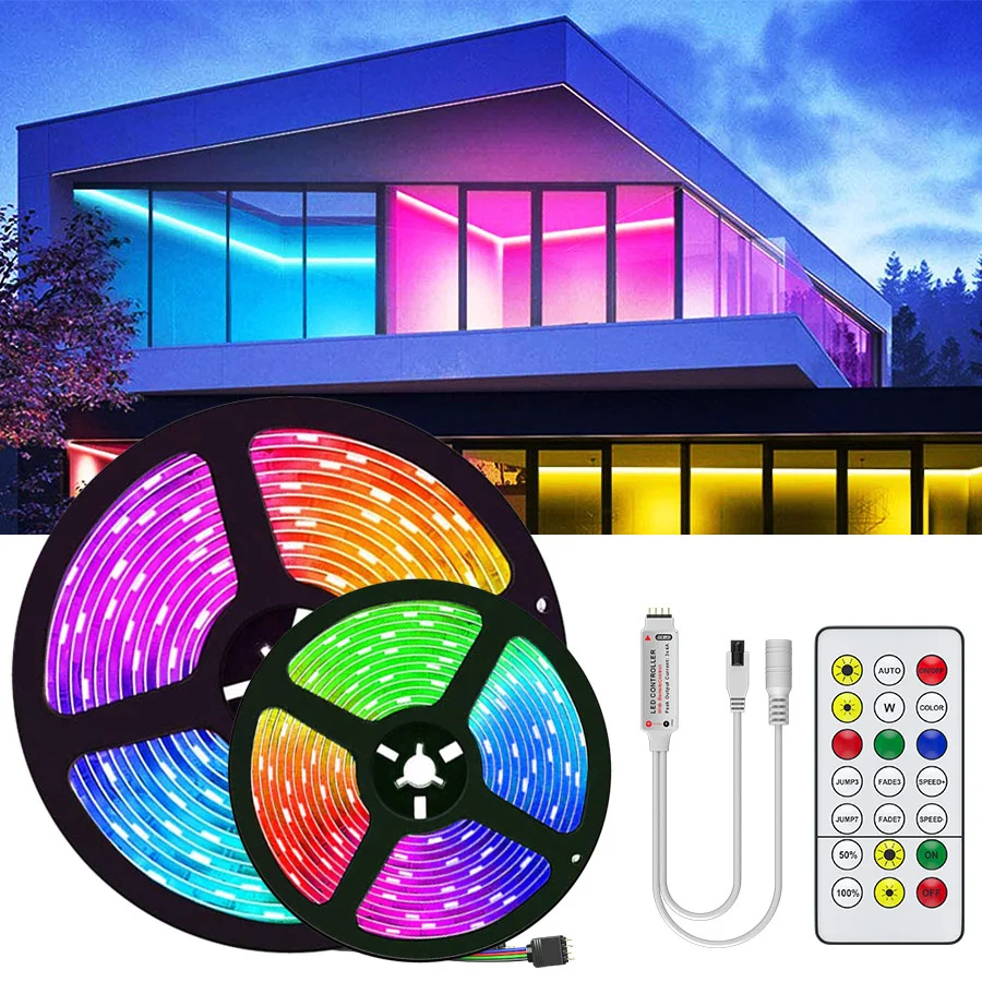 cinta tira luces led 5050 rgb 5 mts control remoto exterior