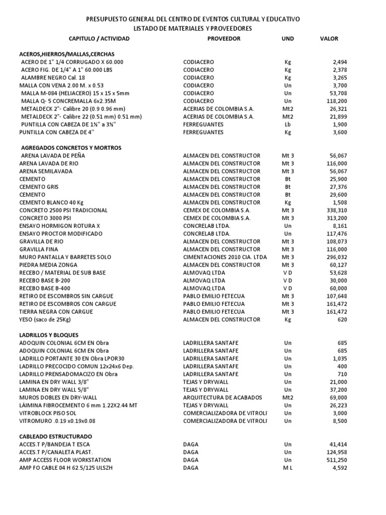 registro de precios de la construccion