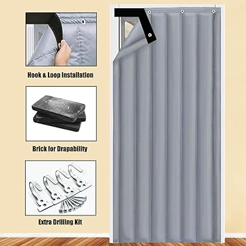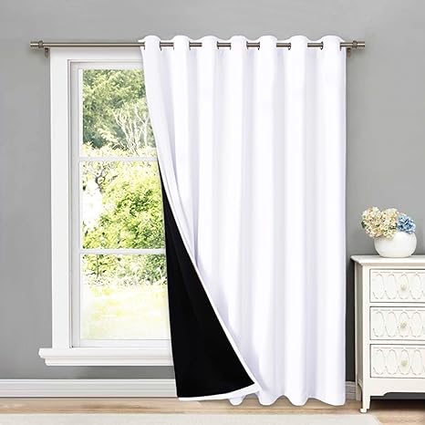 amazon com nicetown cortina aislante termica 100 opaca reduce el ruido pano deslizante con forro negro bloqueo total de luz cortina para puerta de patio home kitchen