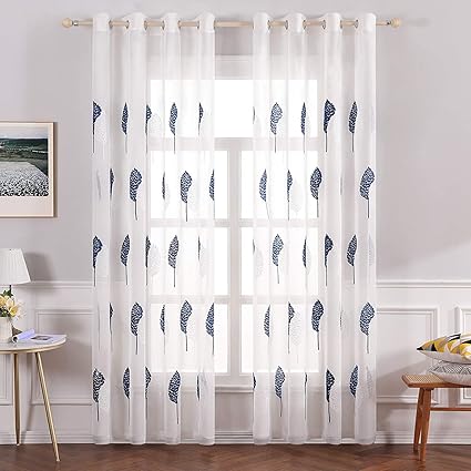 miulee 2 unidades cortinas bordado translucida de dormitorio moderno ventana visillos salon paneles con ojales plateados para sala cuarto comedor