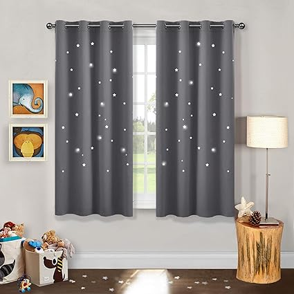 pony dance cortinas modernas infantiles cortina con estrellas huecas para dormitorio 2 uds 117 x 137 cm gris
