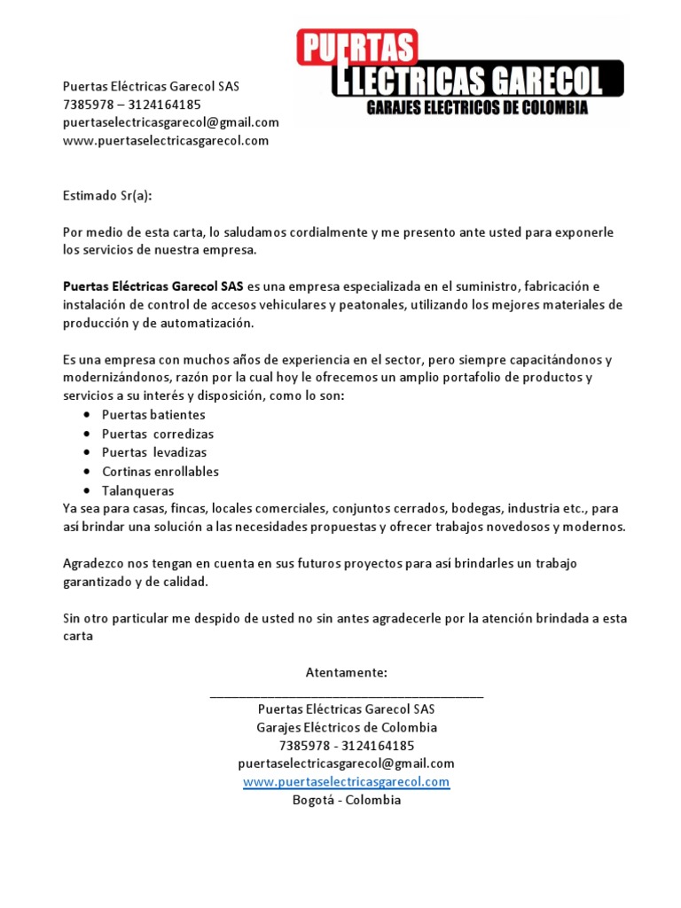 carta de presentacion garecol pdf