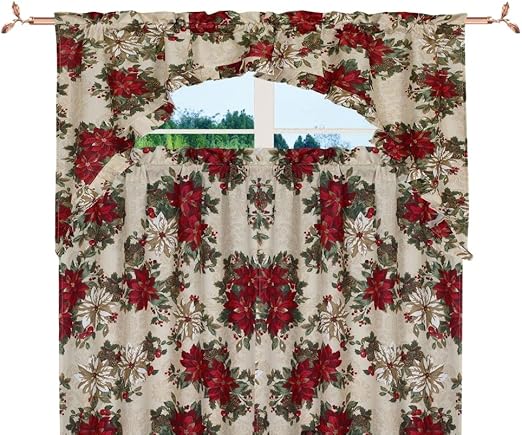 juego de 3 cortinas de cocina con diseno de campana bordada para navidad color rojo