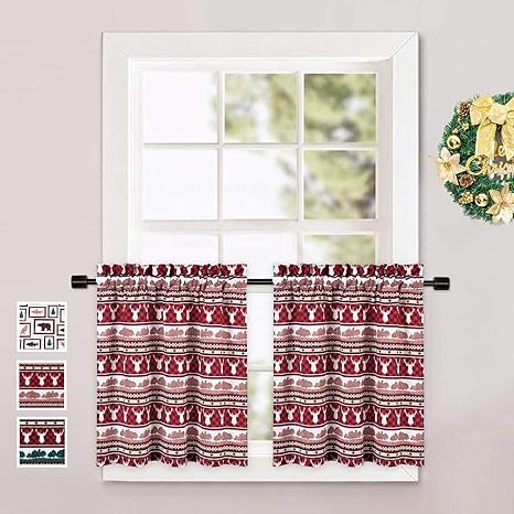 caromio cortinas de cafe de 24 0 in de largo diseno de reno a cuadros navidenos para decoracion del hogar para cocina cafe bano color rojo