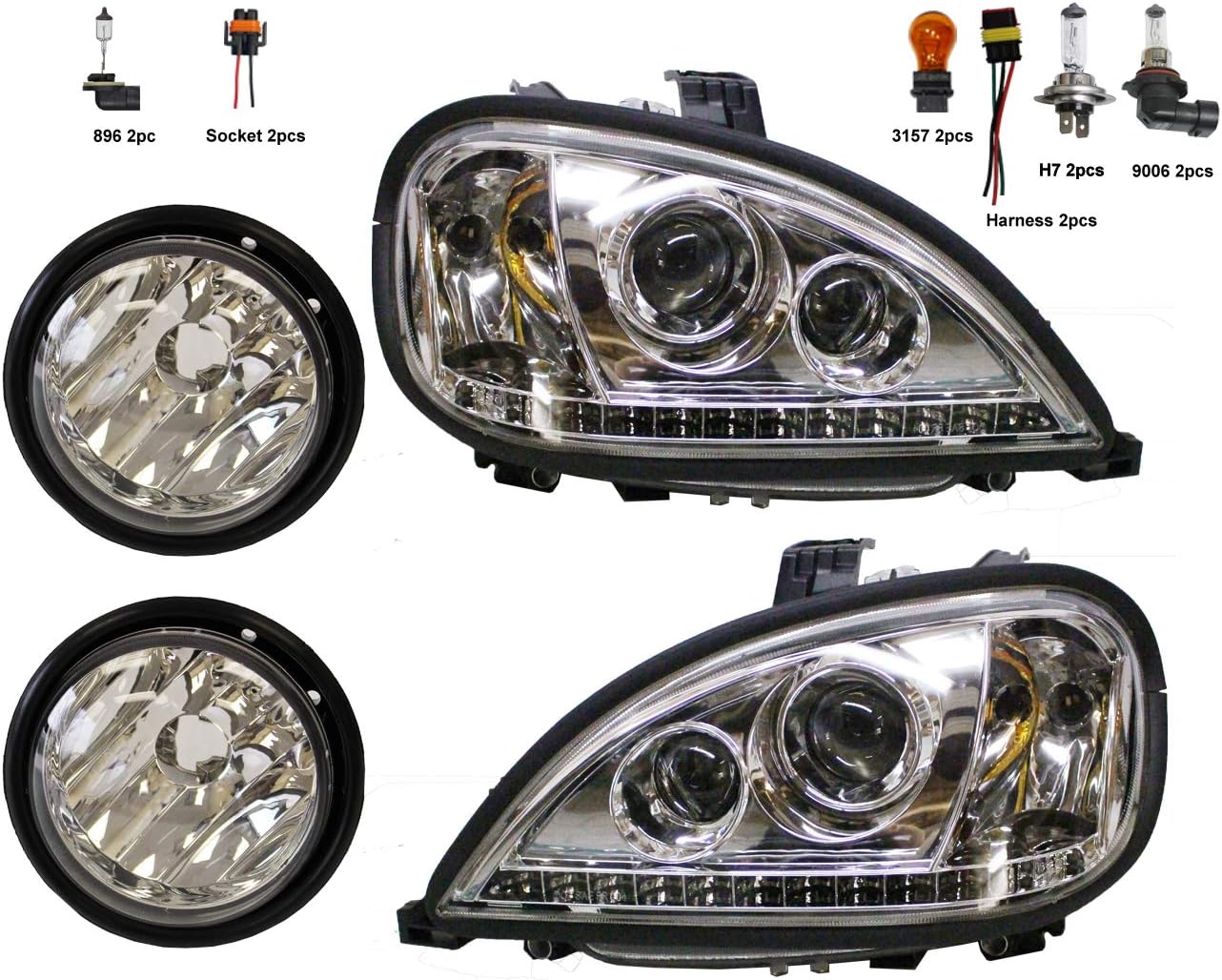headlight with led and fog lamp driver passenger side fit freightliner columbia