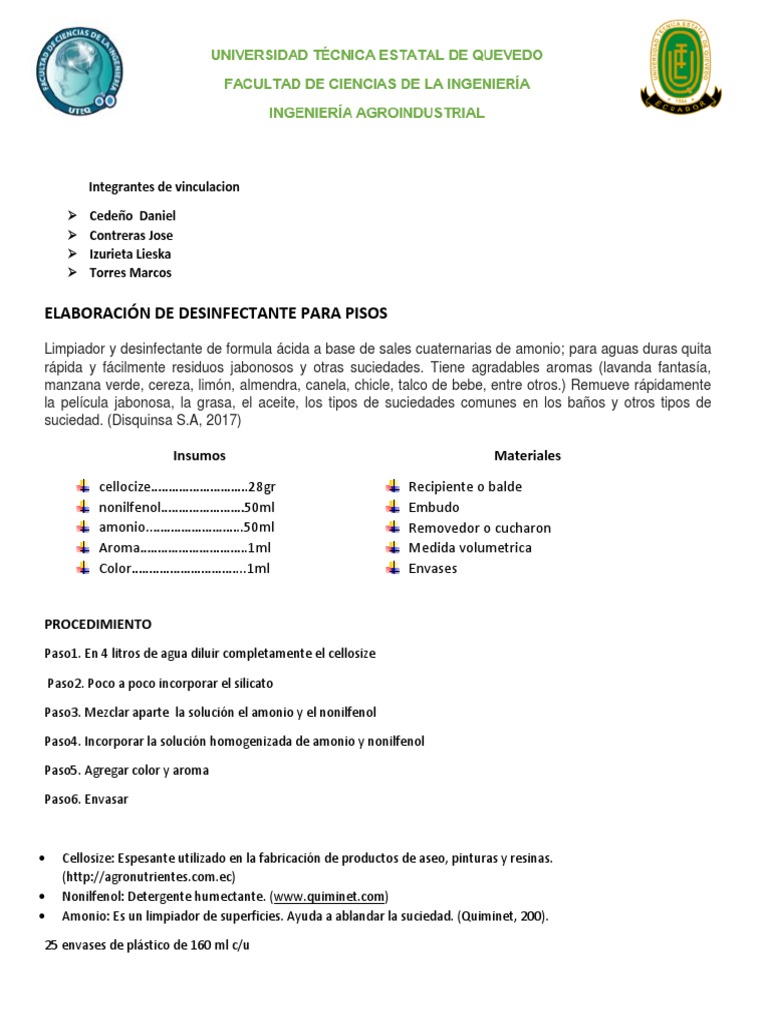 formulas quimicas para elaborar productos de limpieza bonu