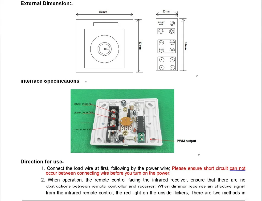 dimmer para ajuste de brillo de luz led dc12 24v 8a