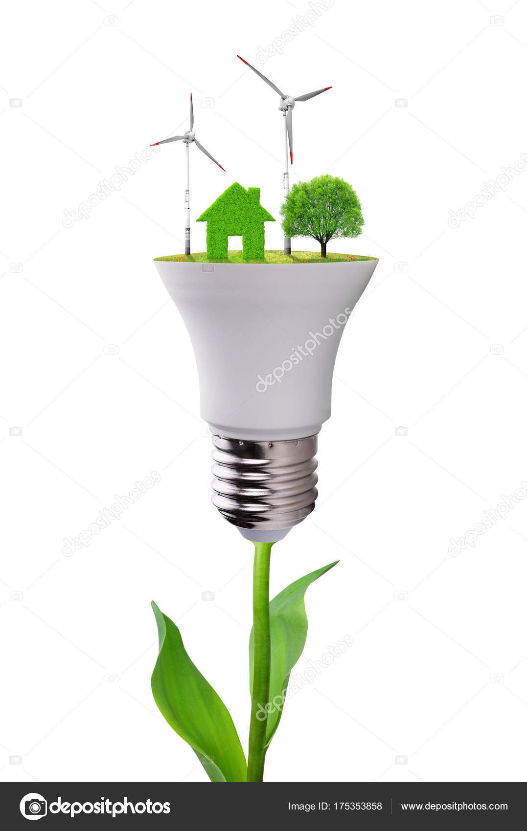 eco led bulb with wind turbines in hand at sunset the concept