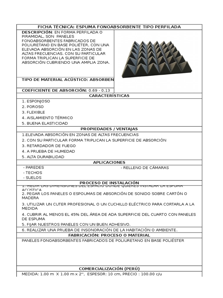 espuma acustica profesional para ruido 1mt x 2mts x 5 cm 82 900 00