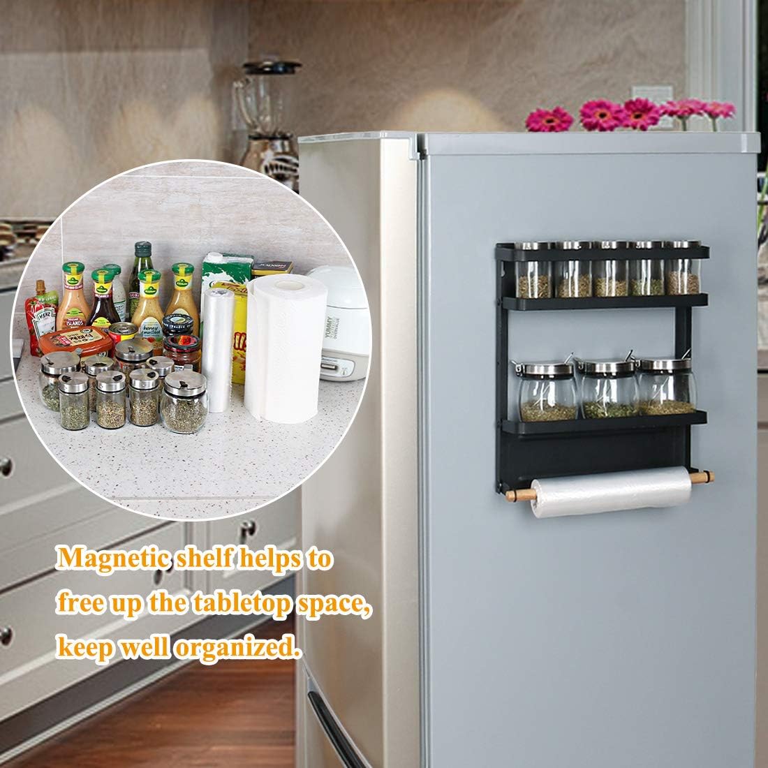 estante lateral para nevera soporte de pared lateral organizador de suministros de cocina multifuncional para el hogar almacenamiento de