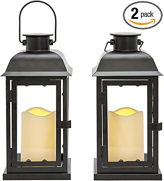 mammygol faroles decorativos vintage con temporizador 10 0 in para exteriores con velas led parpadeantes sin llama linternas colgantes para