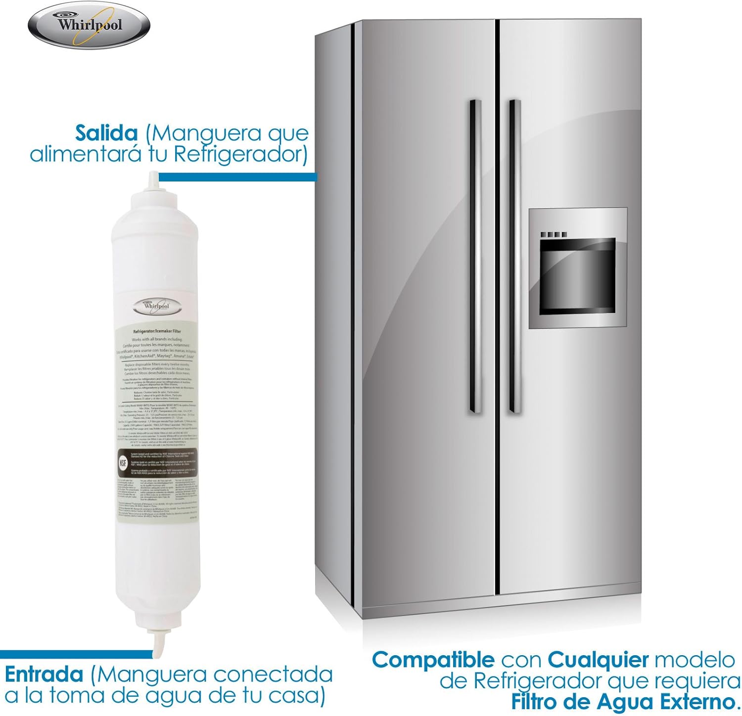 filtro de agua externo universal 4378411rb marca whirlpool para refrigeradores