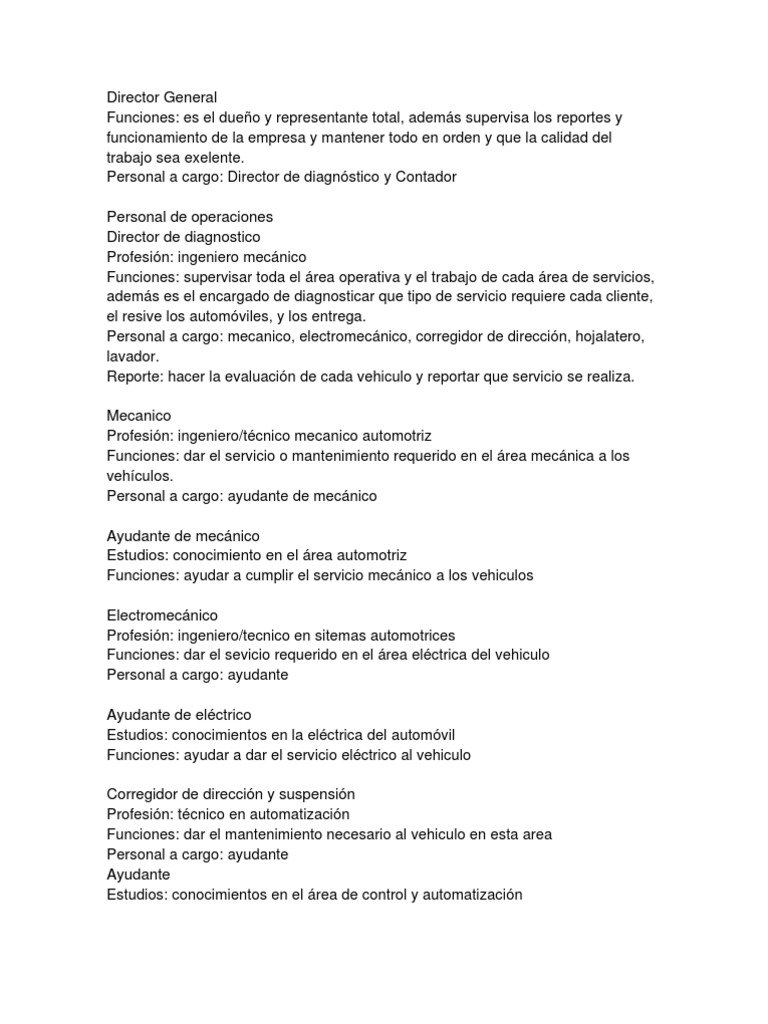 puestos y funciones coche