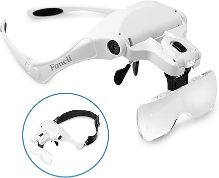fc optics gafas lupa profesional con luz led y cinco lentes intercambiable 1x a 3 5x lupa visera relojero de manos libres para leer soldar