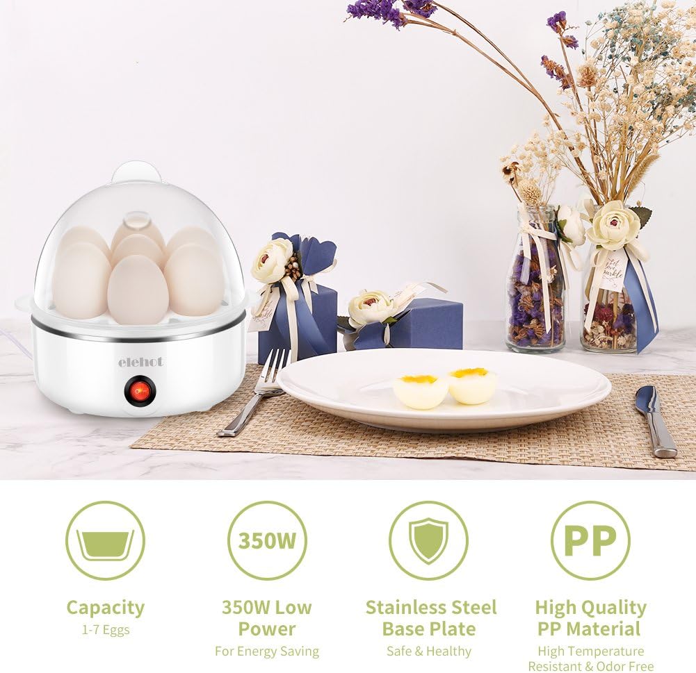 elehot cocedor de huevos hervidor de huevos electrico con capacidad para 1 7 huevos moderno 350w sin bpa blanco