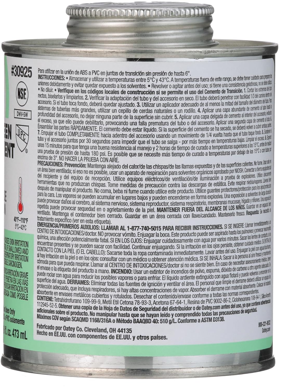 oatey 30925 medium bodied transition