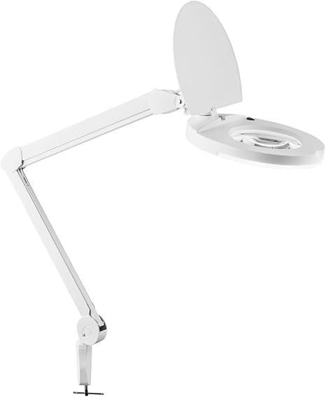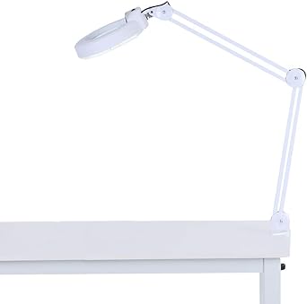 lampara led con lupa 5x y brazo articulado blanca