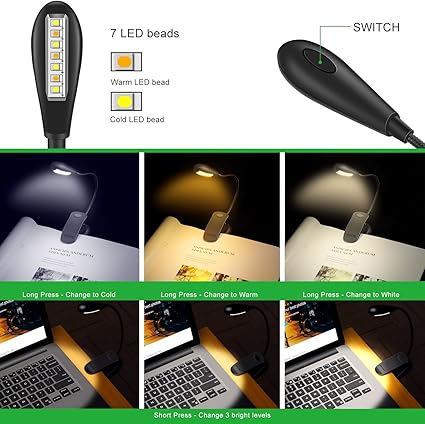 luz lampara lectura libros led clip viajes portatil