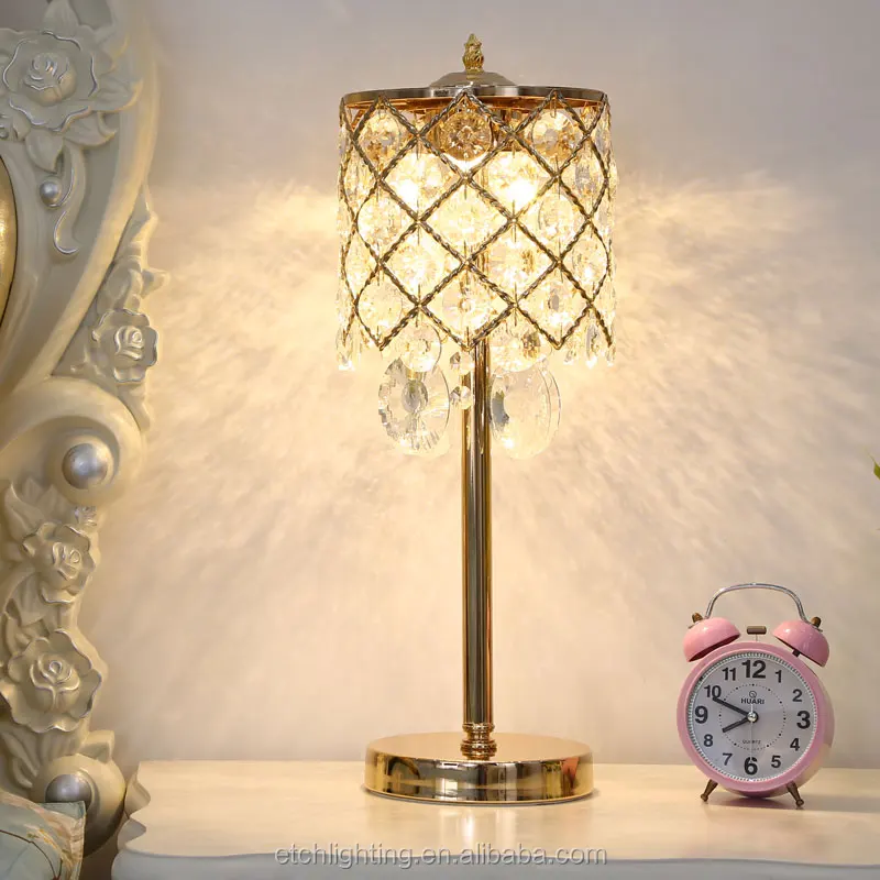luz de escritorio dorada plateada lampara de mesa led con cuentas de cristal de prisma solido k9 para el hogar lampara de mesita de noche de hotel