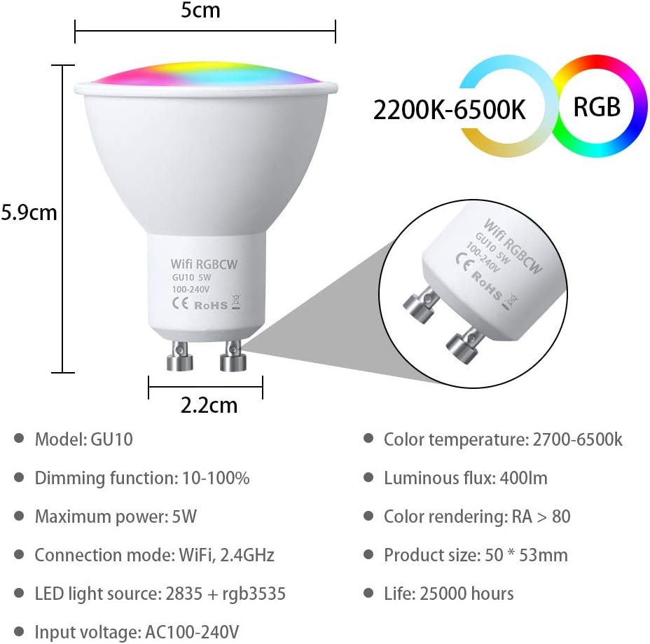 foco led wifi rgbw inteligente wifi soporta alexa y google home app tuyasmart smartlife