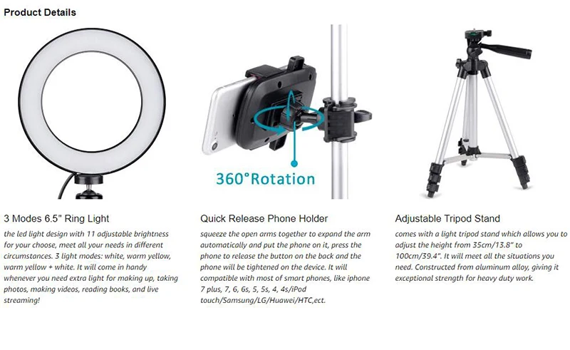 anillo de luz led con tripode soporte para youtube video belleza lampara de maquillaje escritorio mini camara 3 soportes para telefono
