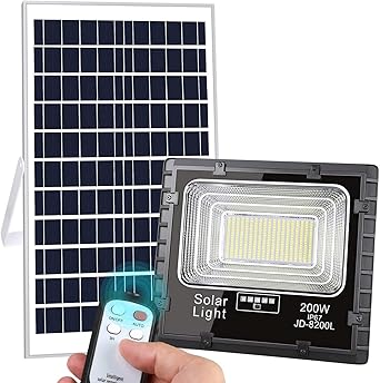luz solar exterior mando a distancia 200w foco solar led luz blanco neutro 8500k lampara solar 200 leds iluminacion solar hasta 20 horas de luz
