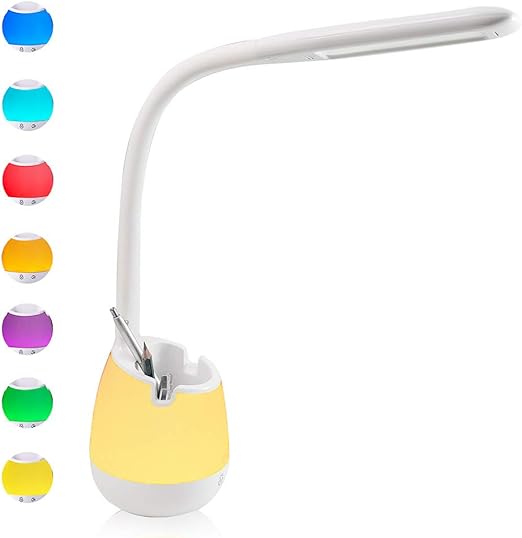 le 7w lampara de escritorio multicolor para ninos estudiar mesa de noche luz blanca con luz de ambiente rgb