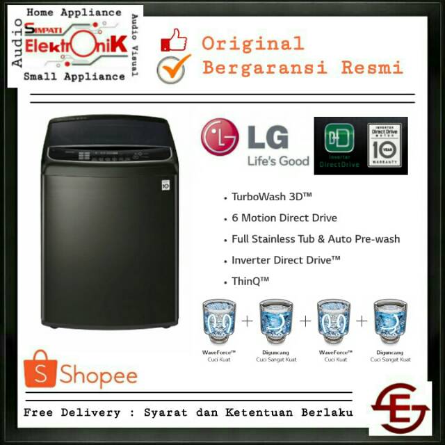 lavadora lg carga superior 19kg 42lbs wt19dsb smart invert