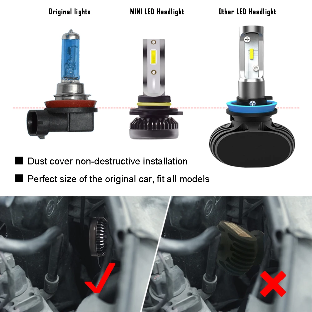 mini size m2 fan cooling led headlight bulbs