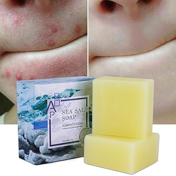 2 barras de jabon de sal marina con leche de cabra natural romantico oso removedor de puntos negros y cicatrices del acne jabon anti celulitis