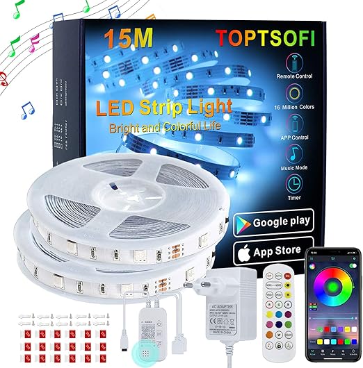 toptsofi luces led 15m music sync tira led rgb 5050 con remote app bluetooth controlada luces led iluminacion para decoracion habitacion y partido