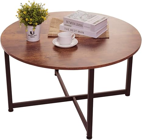 mesa de centro redonda para sala de estar mesa de coctel retro con marco de metal x base9 mesa de sofa mesa de oficina centro de entretenimiento