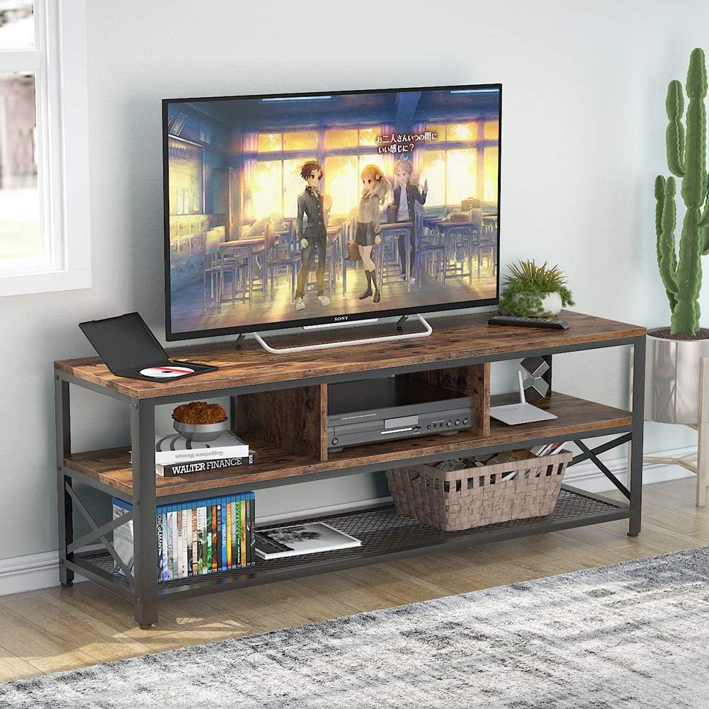 soporte de tv medio rustico industrial para televisor grande de 60 centro de entretenimiento con estantes de 3 niveles consola multimedia mesa