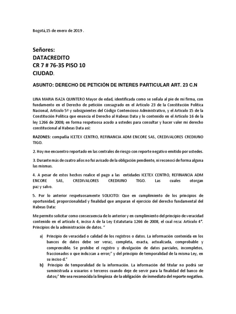 https www semana com credito articulo derecho de peticion para salir de datacredito 57603