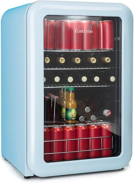 klarstein poplife nevera de bebidas nevera retro mininevera puerta con doble acristalado iluminacion led solo 39 db 0 10 c 115 litros azul