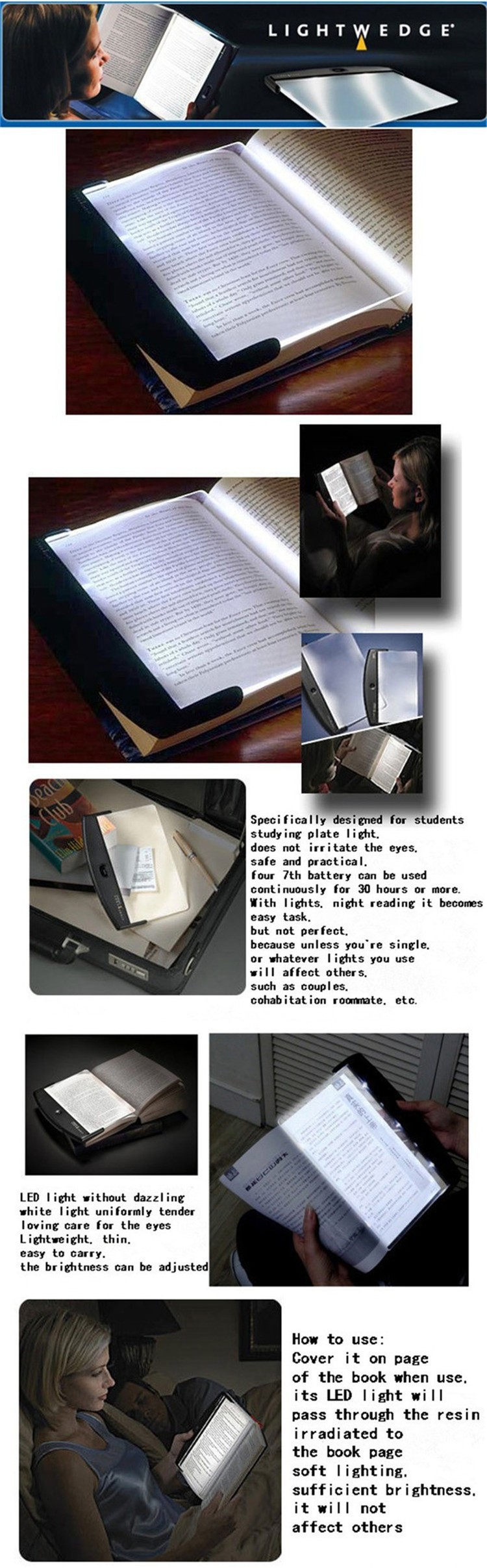 luz led de libro de facil uso con bateria aaa panel plano de 2 5mm de grosor lampara de lectura nocturna iluminacion ajustable luz de lectura de