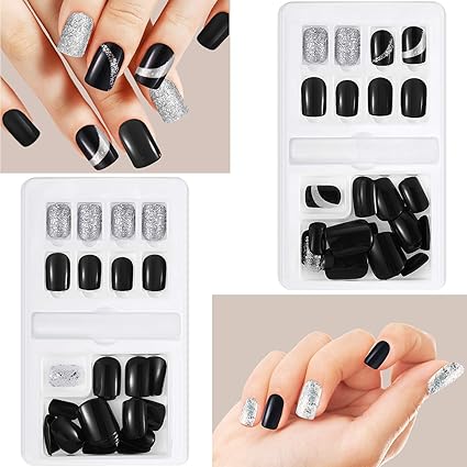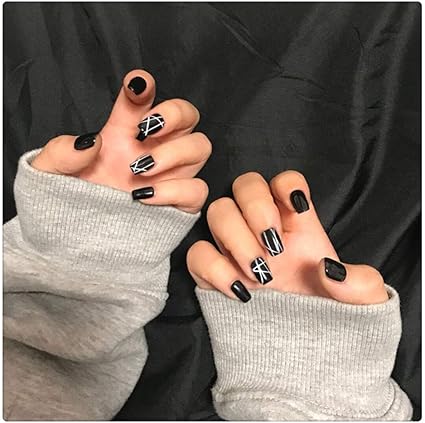 jindinjindin 24 hojas de unas postizas decoradas de manicura francesa unas acrilicas falsas de cobertura completa negro negro 1 uds por