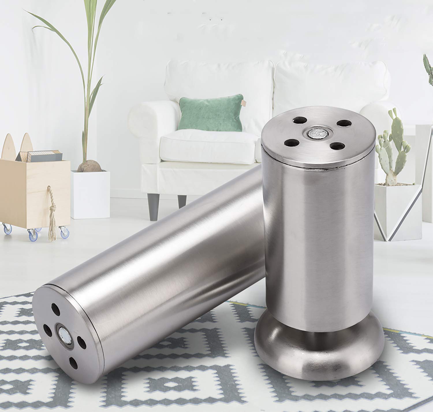 juego de 4 patas inclinadas de acero inoxidable para sofa patas de muebles tubo redondo inclinado