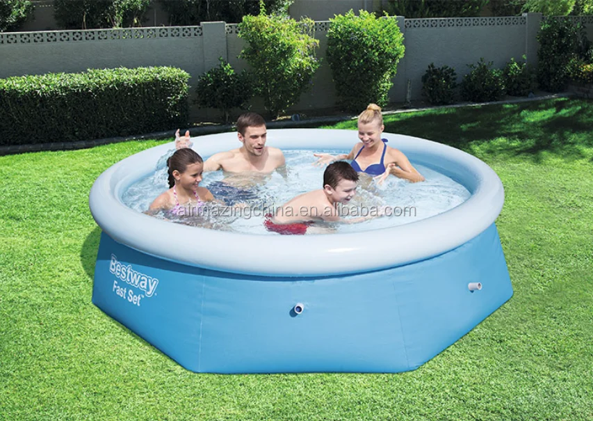 juego de piscina inflable con anillo superior para jardin prado campo piscina redonda color azul