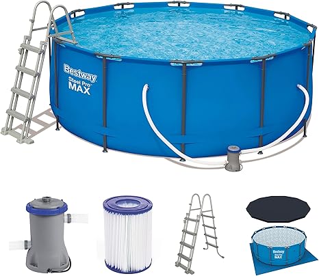 bestway 56438 steel pro max piscina fuori terra rotonda 457x122 cm pompa di filtraggio scaletta e copertura inclusi