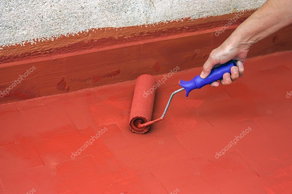 pintar a mano un suelo rojo con un rodillo de pintura 98928760