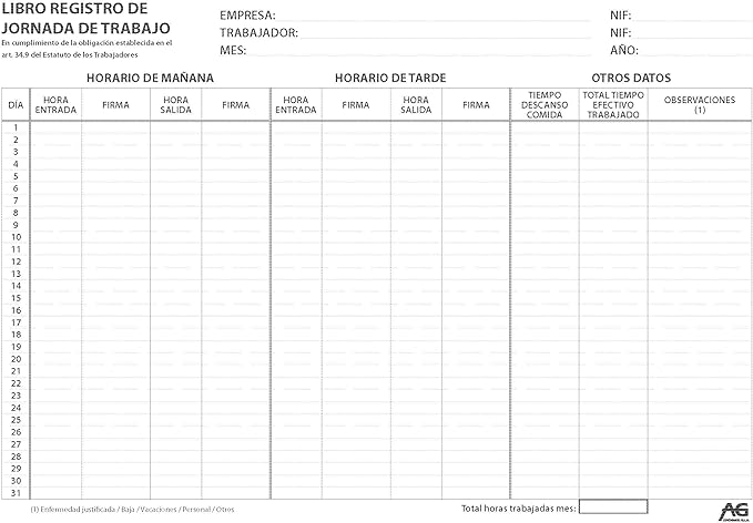 libro registro de jornada amazon es