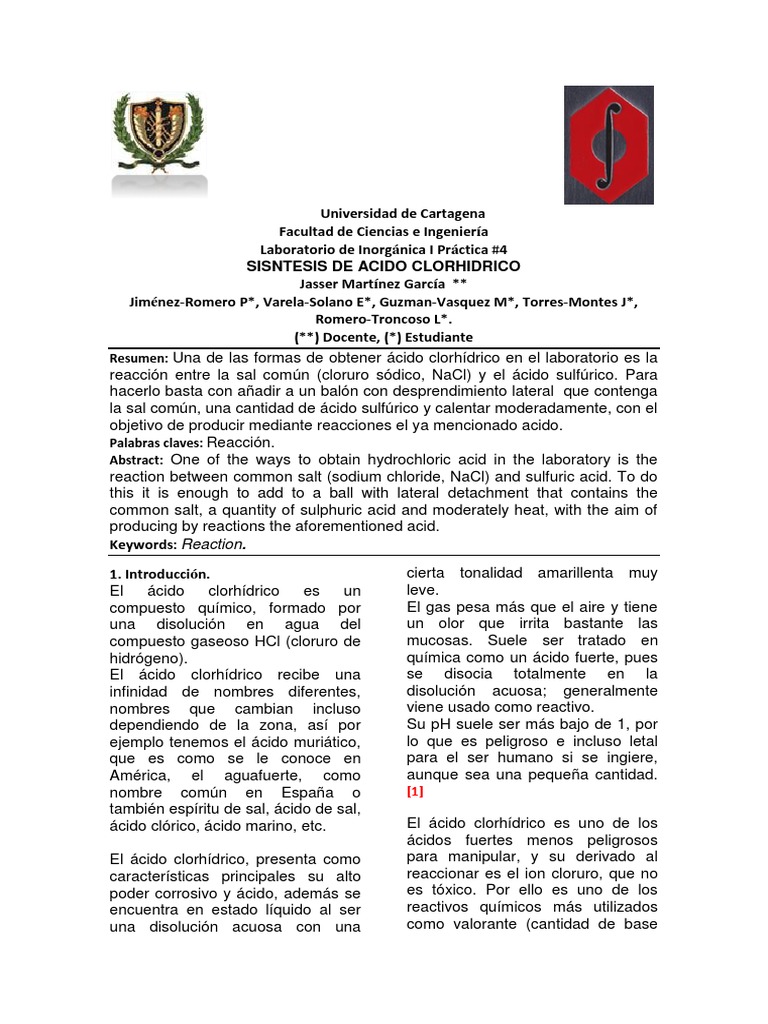 acido clorhidrico formula propiedades
